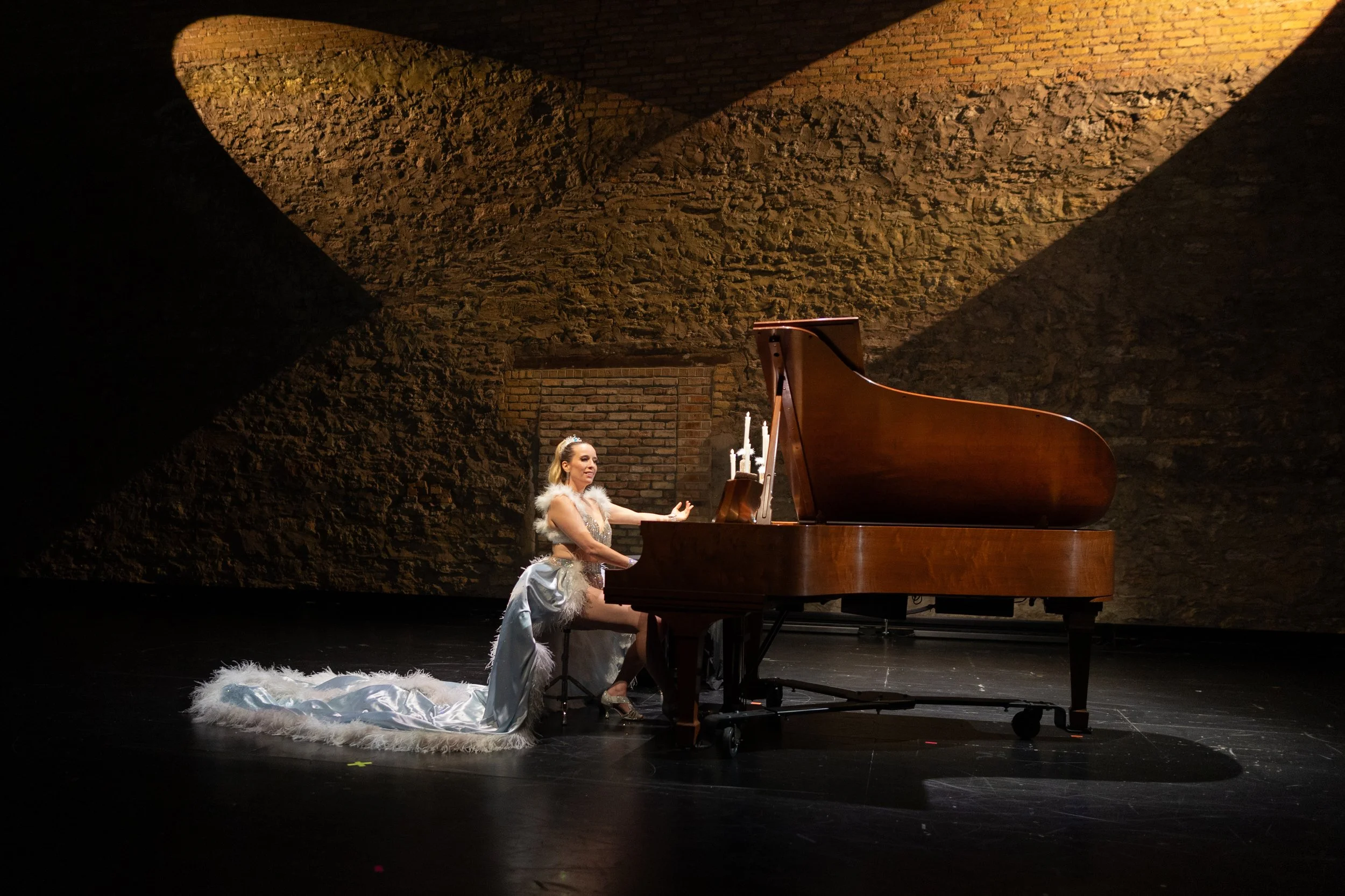 In this high-energy classic showgirl act, Jessica blends burlesque, boa work, and virtuosic live piano. She delivers a bold, reimagined piano solo inspired by the iconic song, fusing glamour and flair into one unforgettable performance.